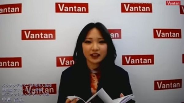 「私たち新入生のために、このような形で式をして下さり、有難うございます。新入生を代表して、ご挨拶申し上げます。私はメイクやファッションが好きで、ファッションとメイクの他に、ネイル、ヘアアレンジ、エステも学べるヴィーナスアカデミーに入りました。バンタンは、プロ講師の方が実践的に教えてくれるというのがすごく合っているなと思いました。未だお会いできていない新入生の皆さんと仲良く楽しく新生活を送れたらいいなと思っています。この2年間で、たくさんのことを学び、夢を定め、友人にここで教わったことを教えられるようになるまで頑張ります。最後になりますが、このような盛大な入学式を開催していただき、心より感謝を申し上げます。皆さまにいただいた祝福の言葉を忘れることなく、精進して参ります。バンタンの入学生としての自覚を持ち、夢の実現に向け、仲間と共に努力していくことを誓い、新入生代表の挨拶とさせていただきます」