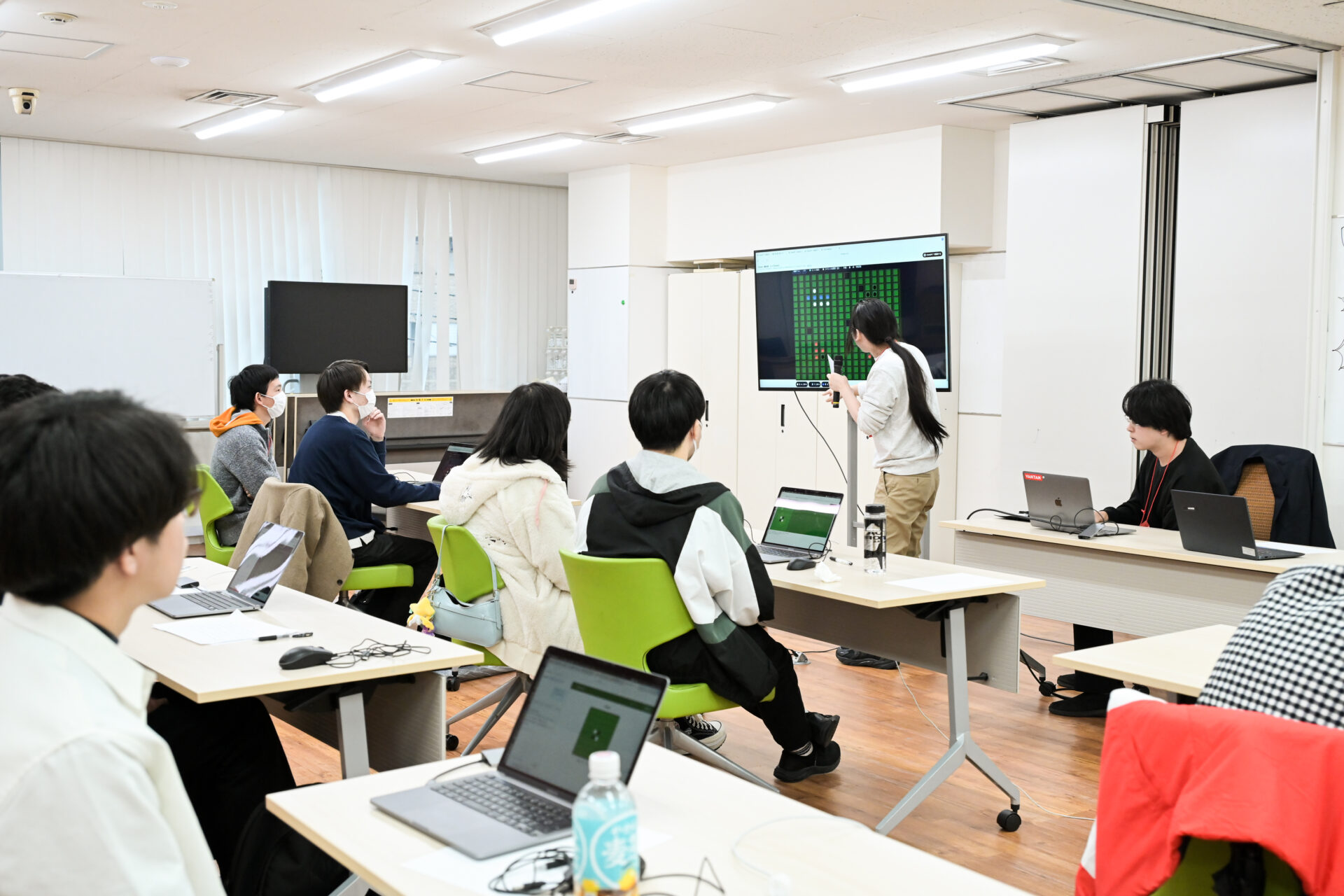 制作後は各ペアにゲームを実演しながら発表してもらいます。
